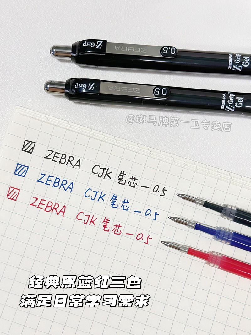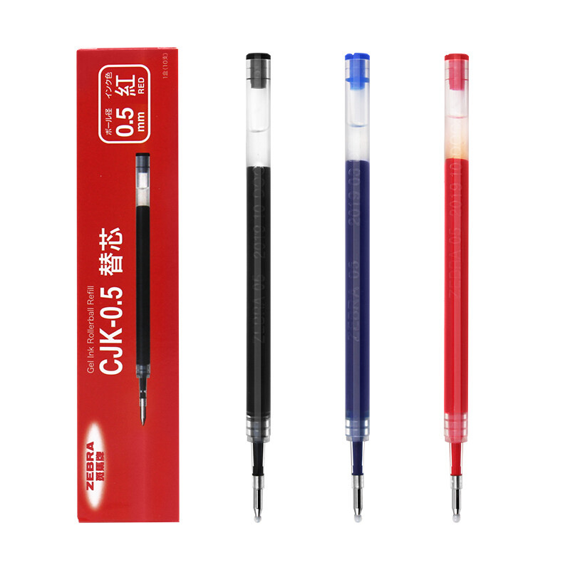 【第一卫】日本zebra斑马笔芯CJK-0.5碳素按动黑笔替芯JJ6笔芯中性笔原装替换芯JJ3水笔芯子弹头黑色红色蓝色