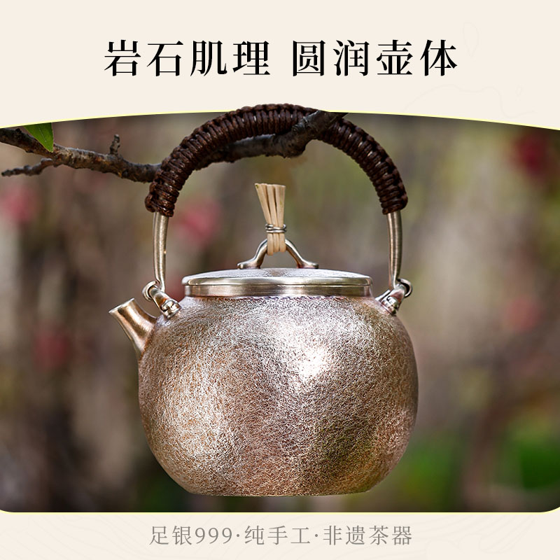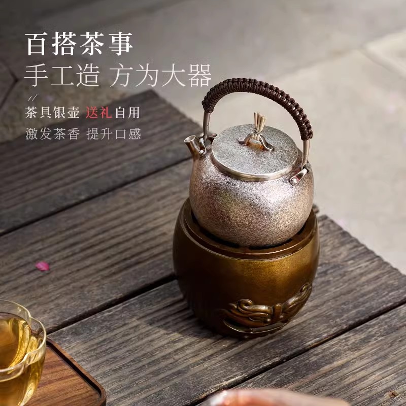 特价银壶999纯银烧水壶纯手工一张打煮泡茶壶高端防烫复古煮水壶