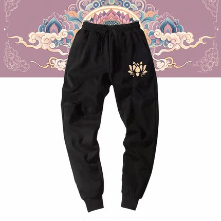 国潮中国传统纹样个性国风莲花纹男女情侣可定制运动卫裤束口长裤