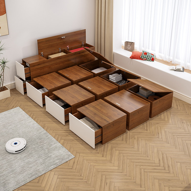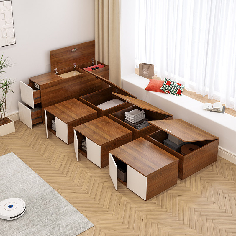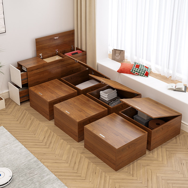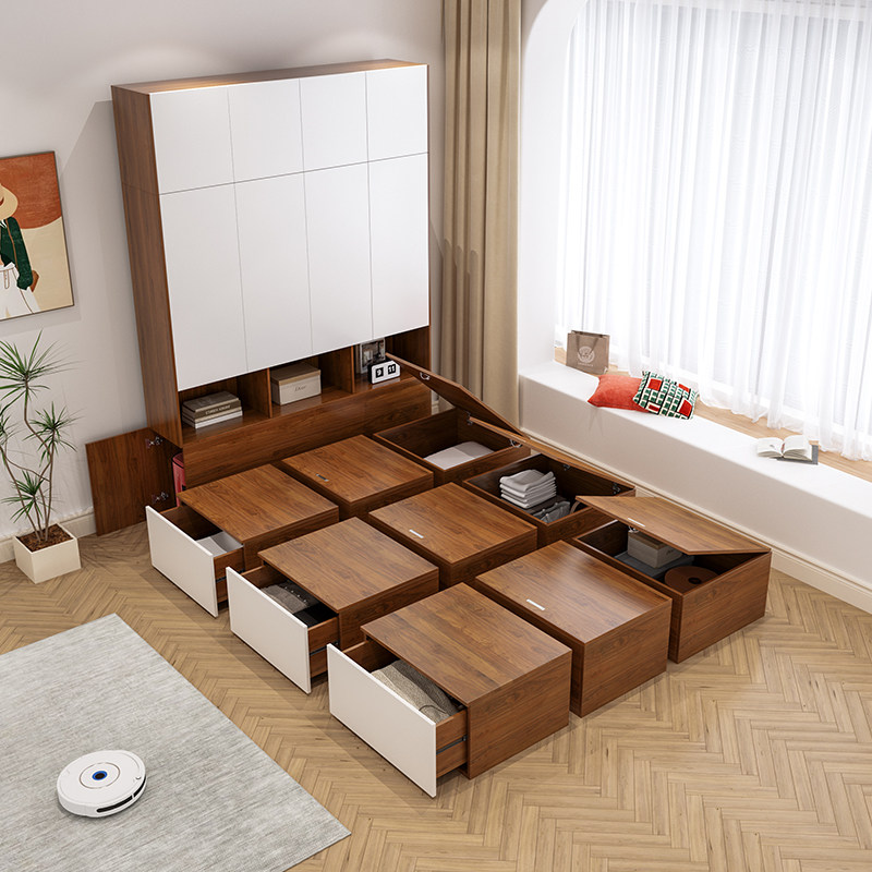 定制万华禾香板日式榻榻米床箱储物小户型儿童地台床衣柜一体组合