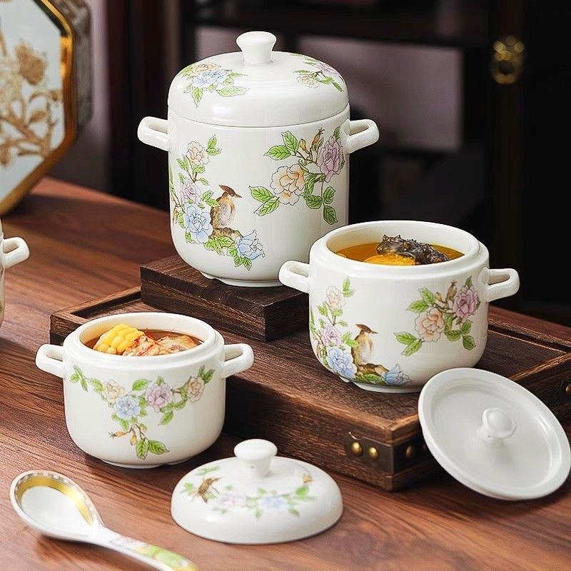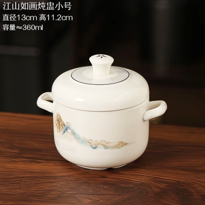 双耳炖盅景德镇陶瓷定制带盖蒸蛋碗家用隔水炖盅蛋羹蒸鸡燕窝专用