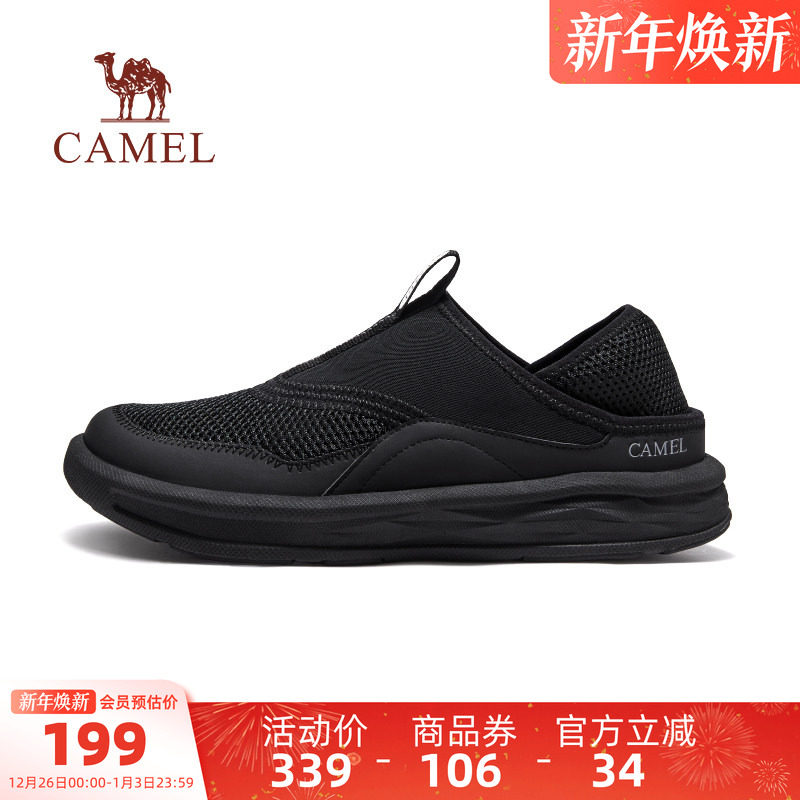 骆驼男鞋网面鞋2025一脚蹬运动鞋
