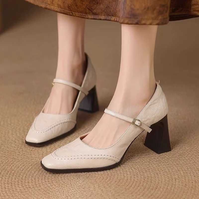 法式浅口单鞋女2026春秋新款高跟鞋女气质高级不累脚粗跟玛丽珍鞋