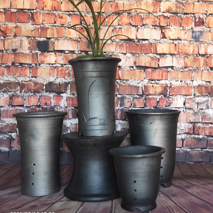手工兰花盆黑陶透气陶瓷大号口径兰花专用盆君子兰老式复古泥瓦盆