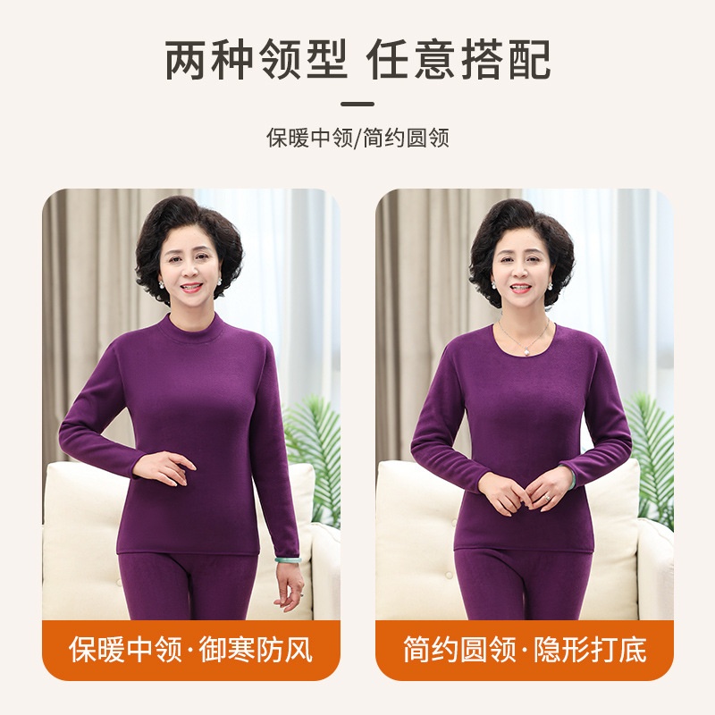 妈妈保暖内衣女士加绒加厚秋冬中老年人爸爸男款秋衣秋裤套装