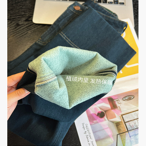 直直腿显瘦高腰复古宽松九分直筒裤女秋冬季加绒窄版阔腿牛仔裤