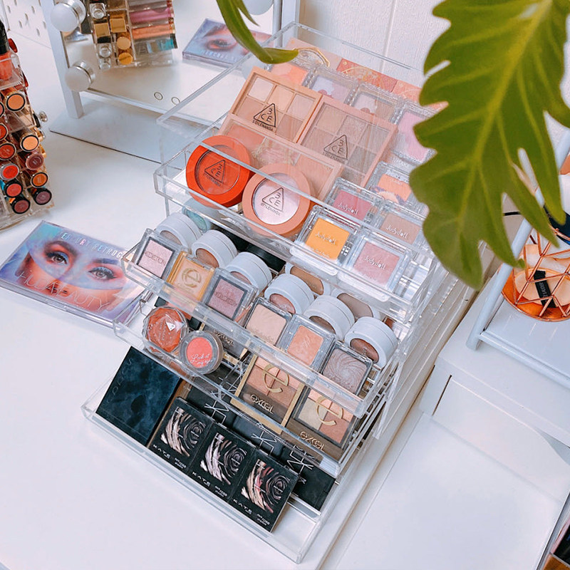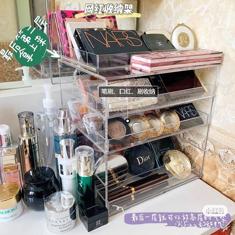 红书同款亚克力抽屉眼影盘收纳盒口红粉饼气垫化妆品置物架桌面