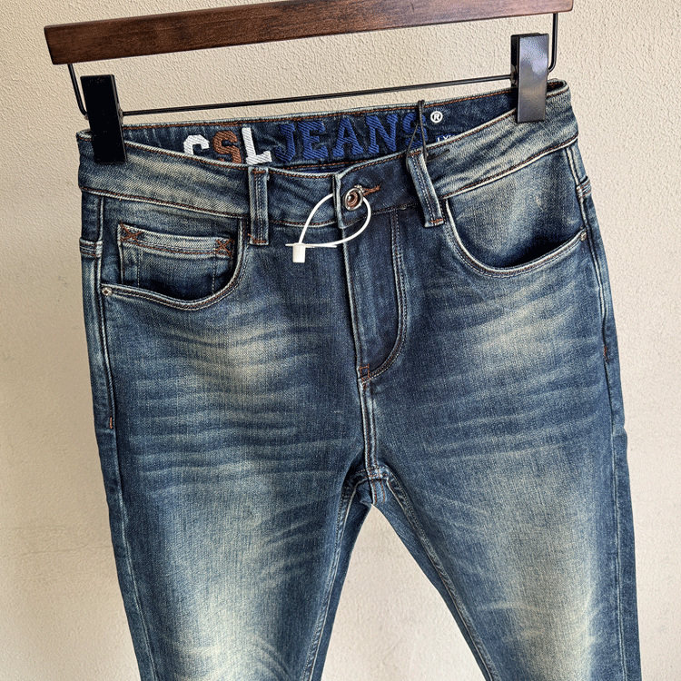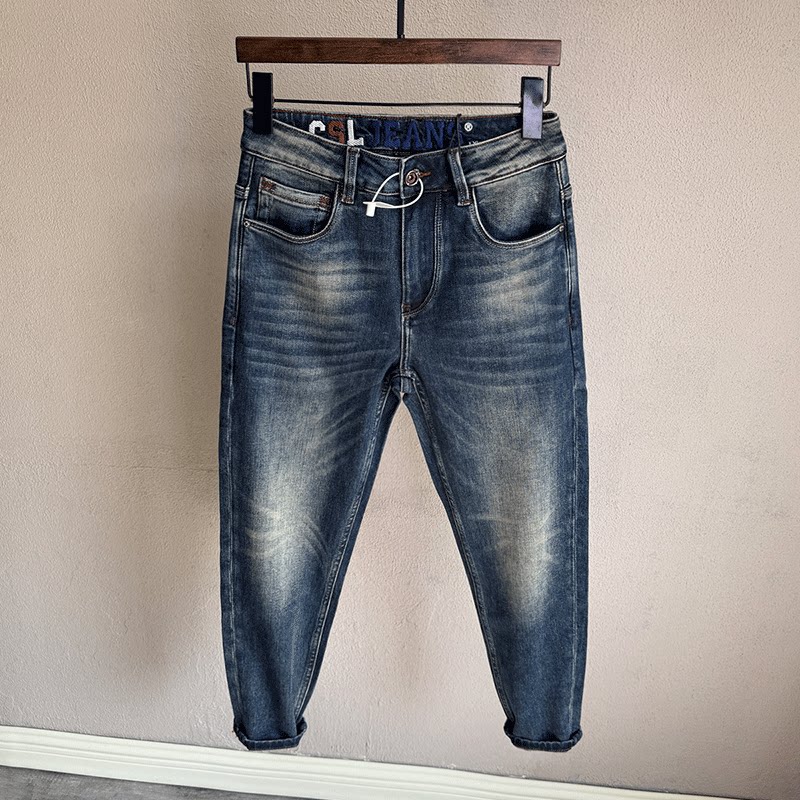 160CM八分锥形裤高档男款秋冬厚度小脚弹力牛仔九分裤子小个9分裤