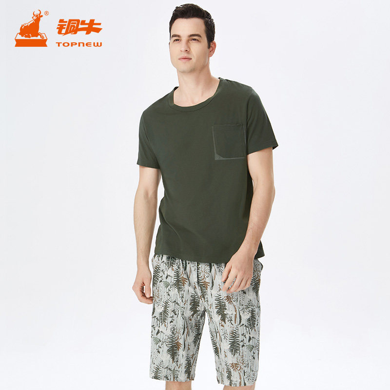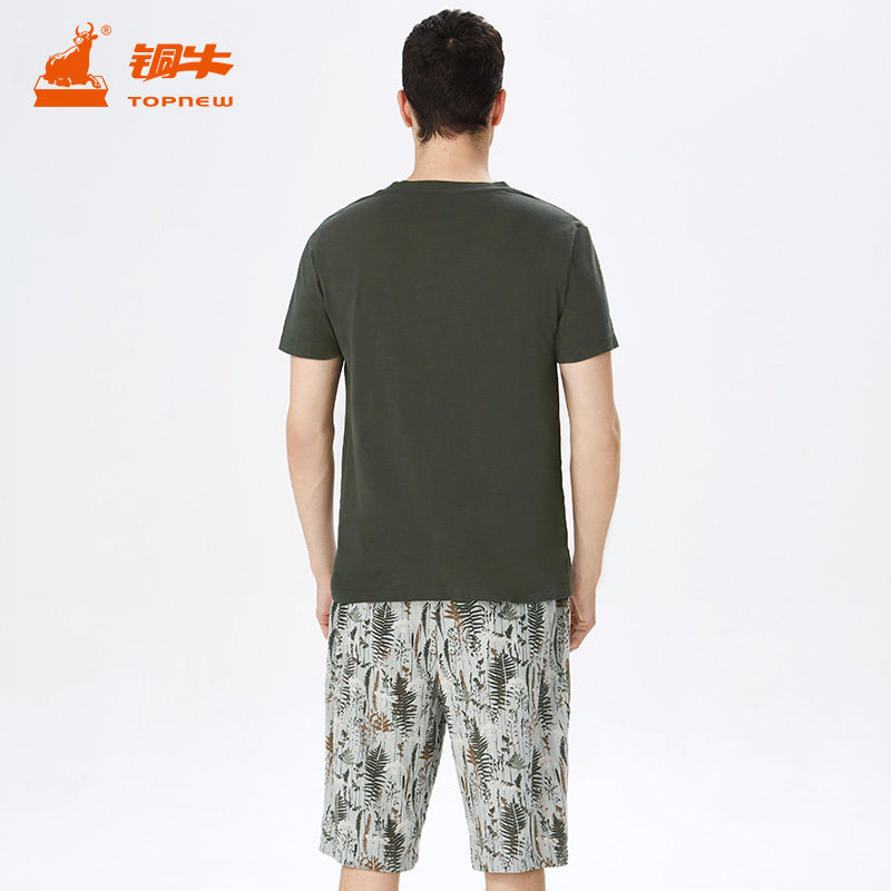 铜牛春夏纯棉汗布印花半袖男套圆领睡衣家居服套装NJ037