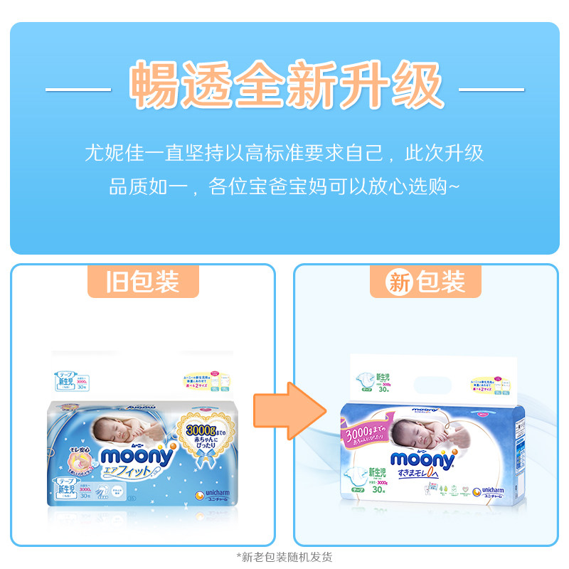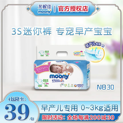 日本尤妮佳moony畅透早产新生儿NB30纸尿裤早产儿专用尿不湿0-3kg