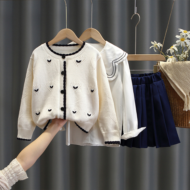 女童学院风套装2025春秋装儿童开衫毛衣外套衬衫百褶短裙子小香风