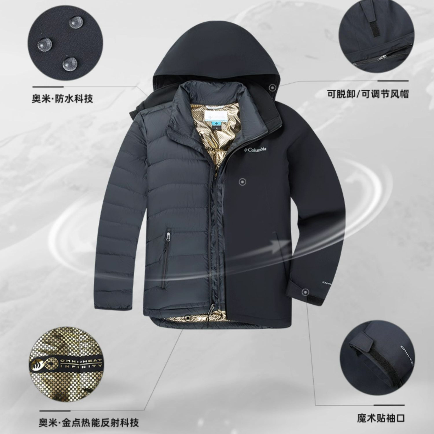 哥伦比亚羽绒防水三合一冲锋衣