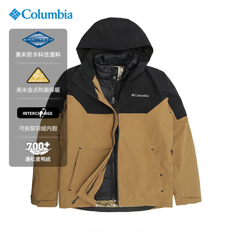 Columbia哥伦比亚羽绒三合一冲锋衣秋冬户外徒步保暖外套WE6671