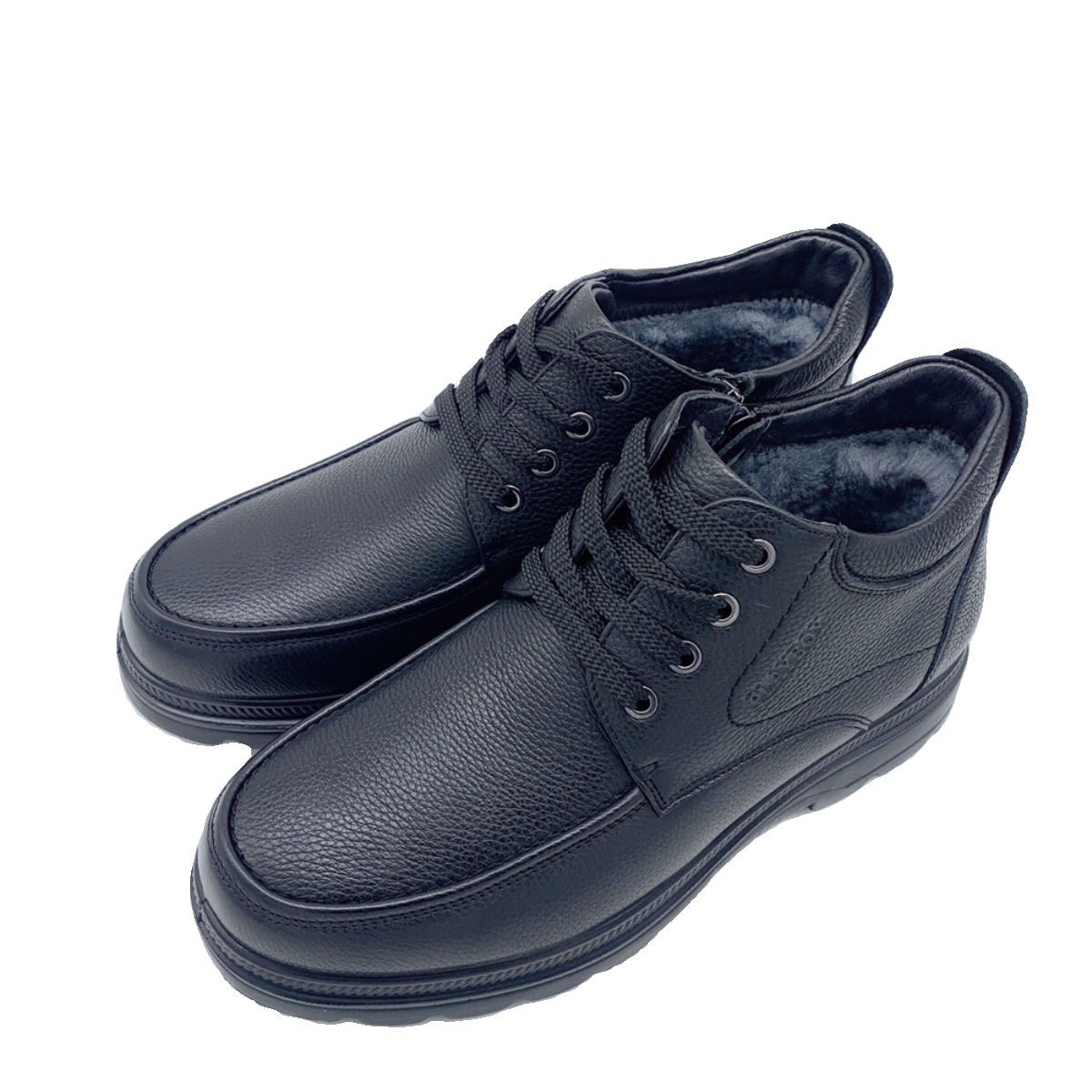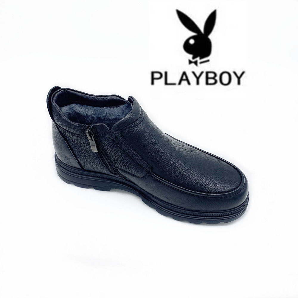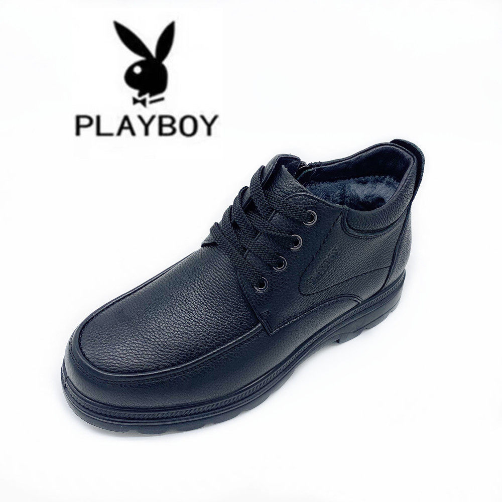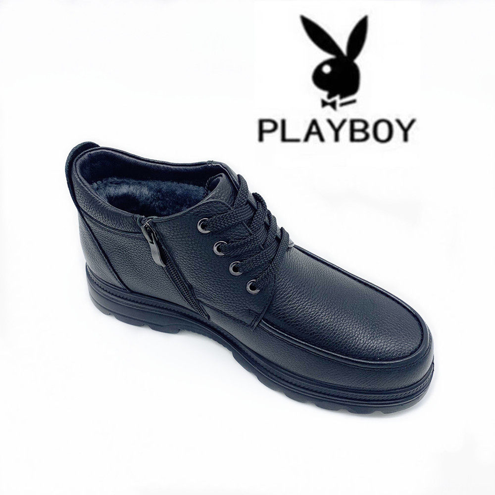 花花公子男鞋冬季商务休闲棉皮鞋皮毛一体男靴防滑加绒加厚棉鞋男