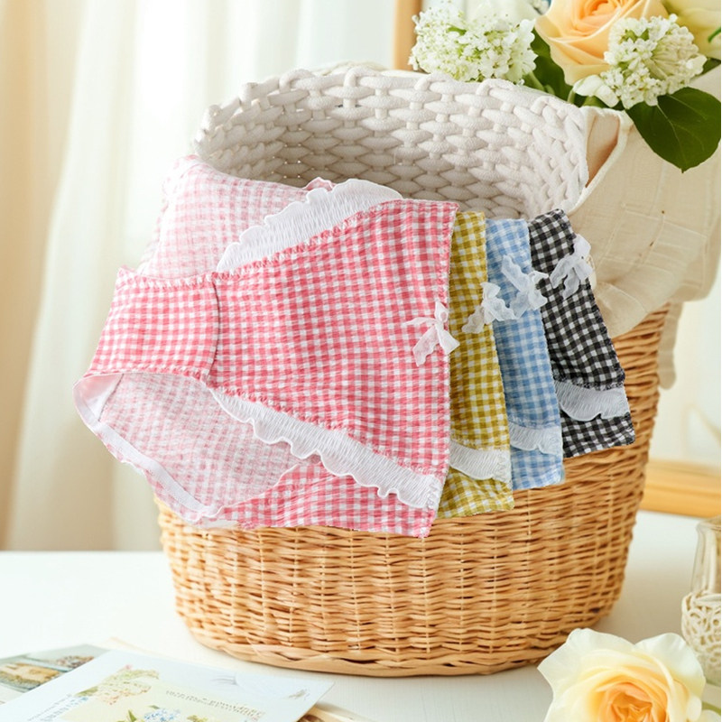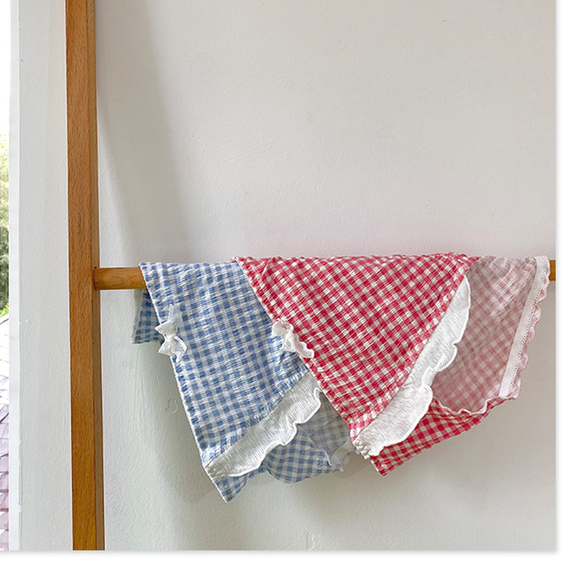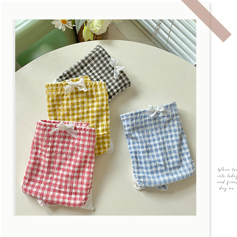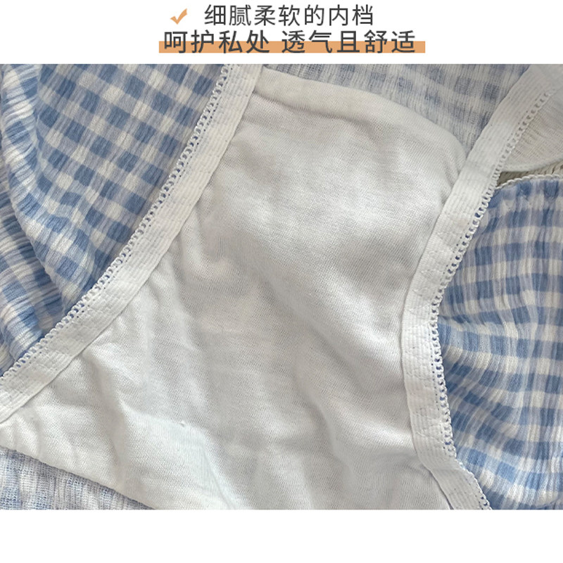 高腰大码女内裤莫代尔小清新纯棉格子高开不勒腿荷叶边胖妹三角裤