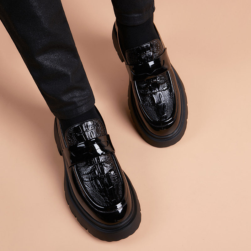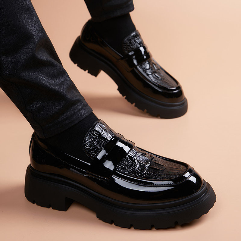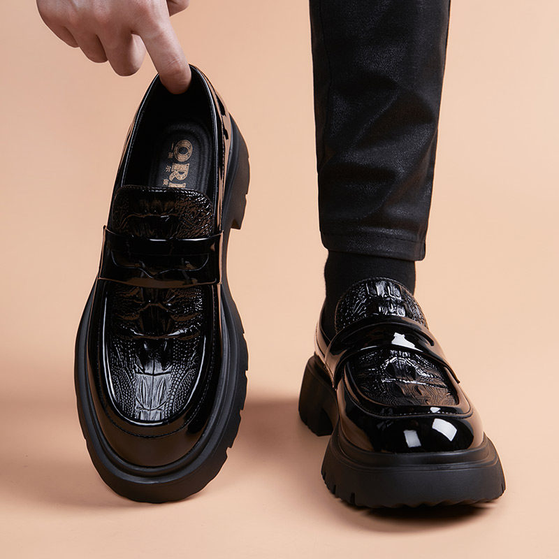 皮鞋真皮新款透气厚底青年商务正装百搭男鞋休闲增高英伦圆头潮鞋