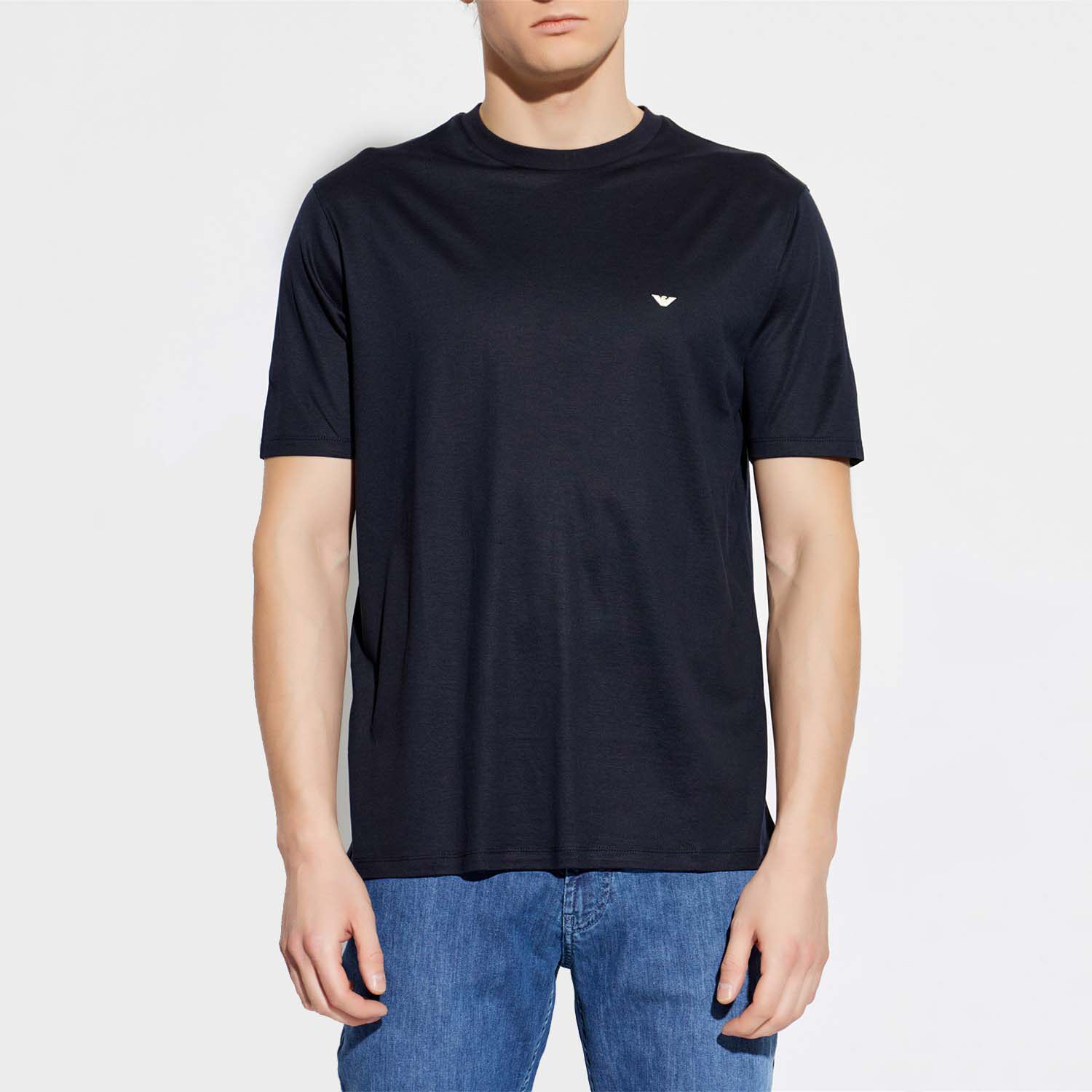 Armani/阿玛尼EA 男士刺绣鹰标丝光棉短袖T恤 EM004592 AF13747