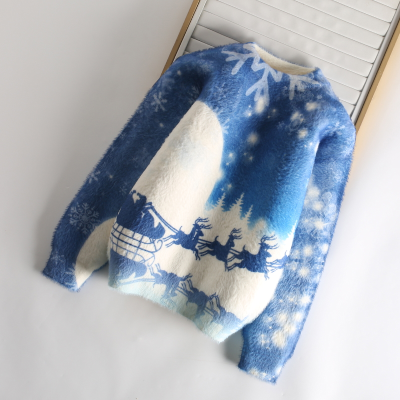 麋鹿雪花男童水貂绒毛衣男宝2025秋冬装新款儿童针织衫套头小男孩