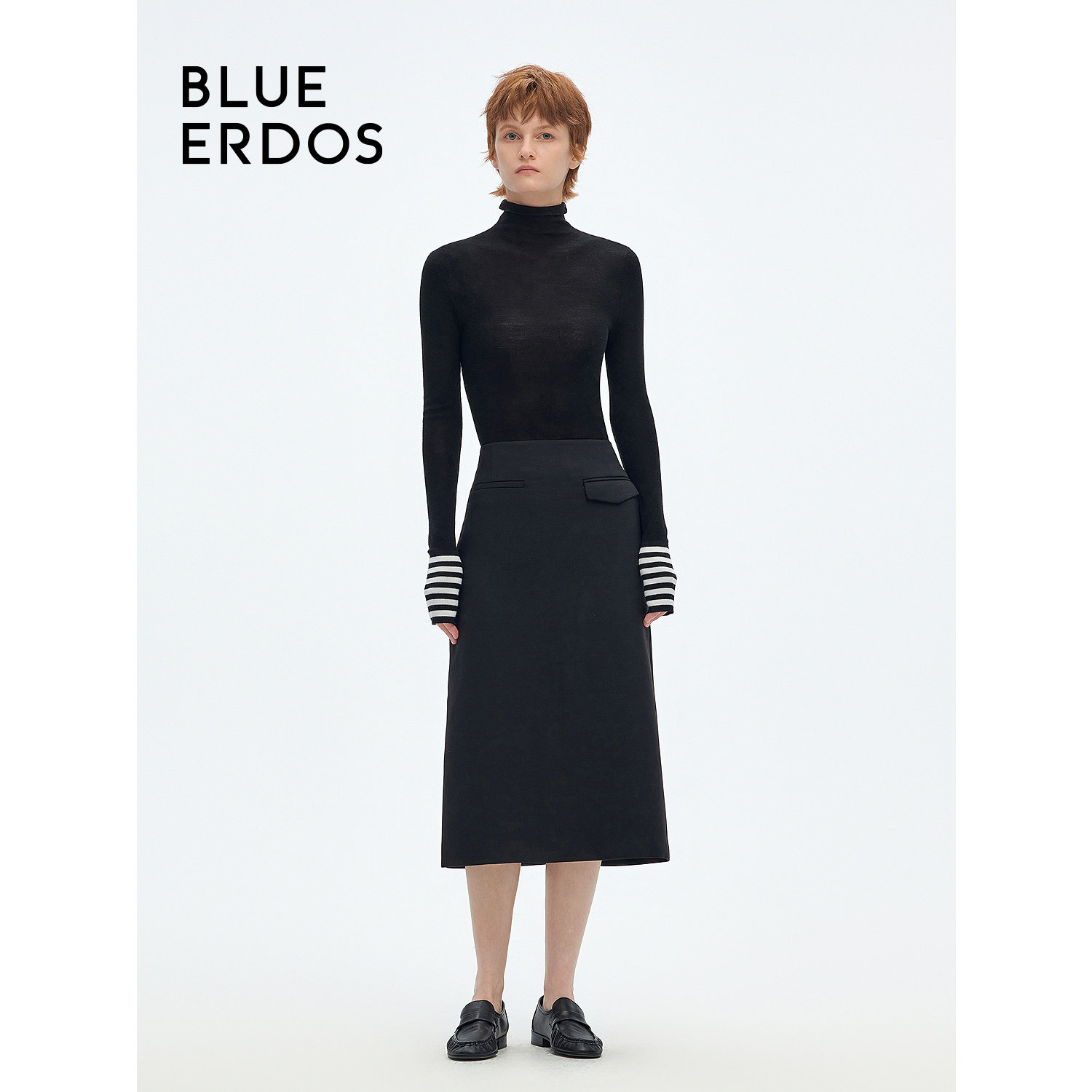 BLUE ERDOS 知识分子风智性通勤简约黑色H型半身裙