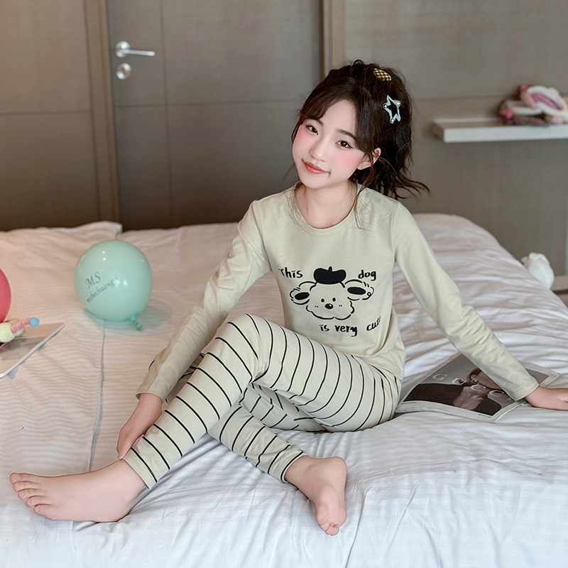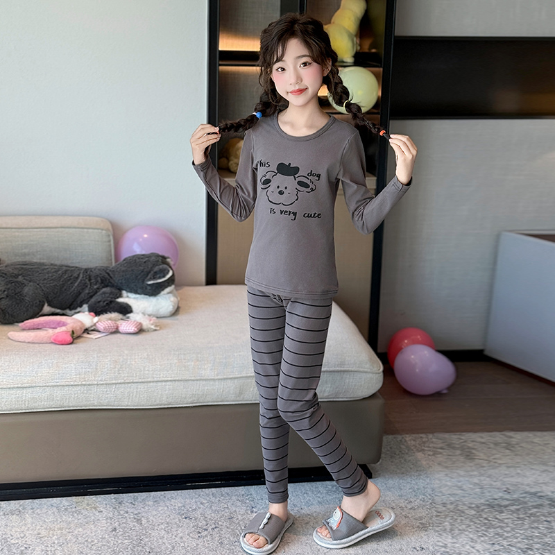 女童内衣套装秋冬纯棉薄儿童秋衣秋裤中大童保暖睡衣棉毛衫两件套