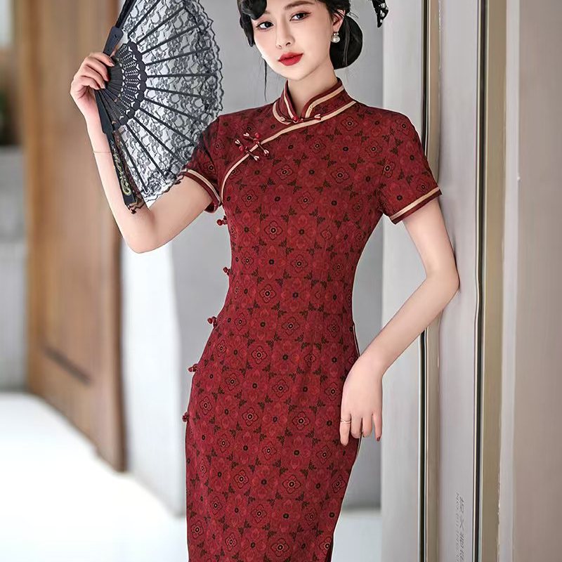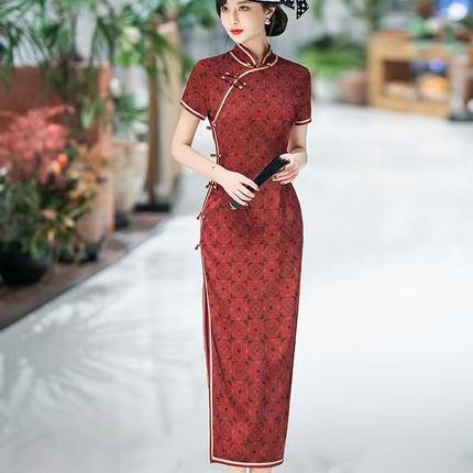高端长款夏季2025旗袍改良修身新款气质日常复古连衣裙中式送考红