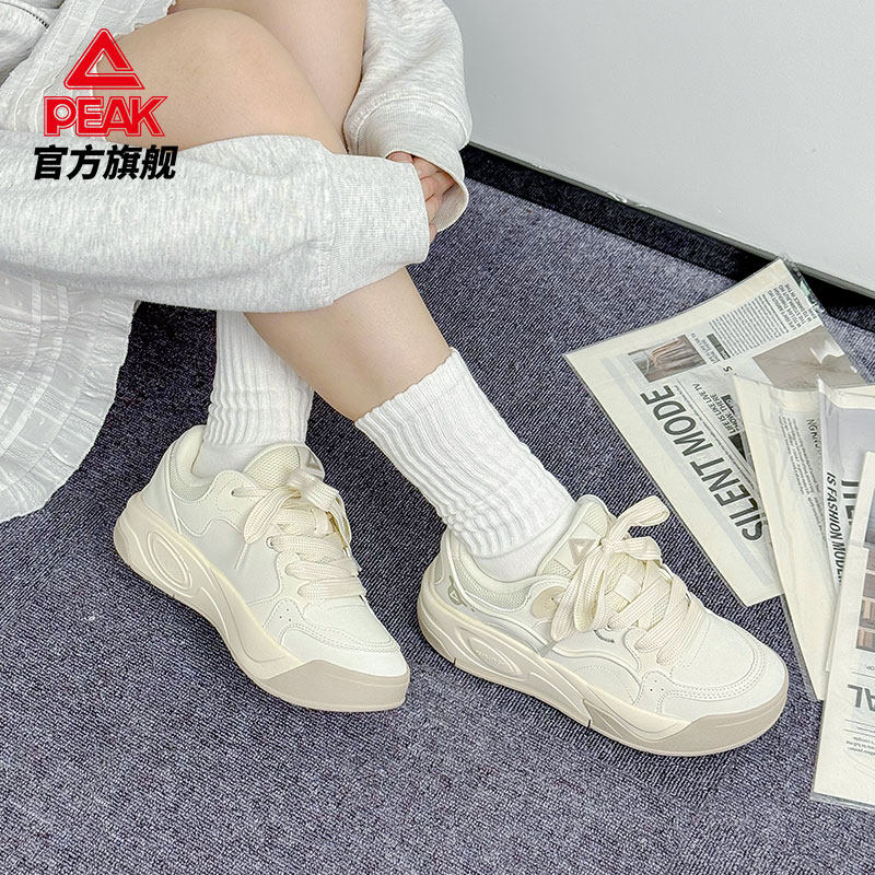 匹克态极女鞋白色百搭板鞋冬季2026新款皮面保暖运动鞋厚底休闲鞋