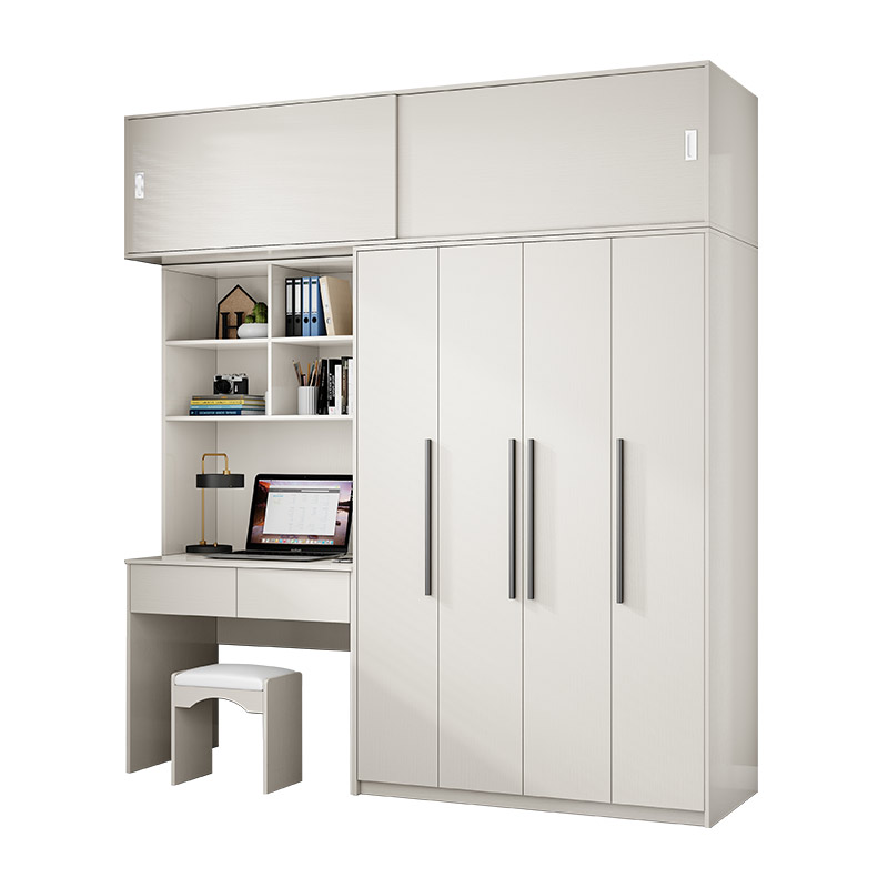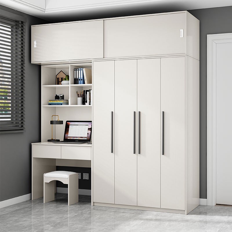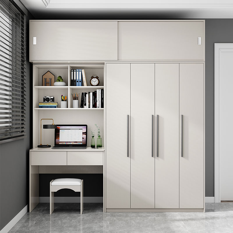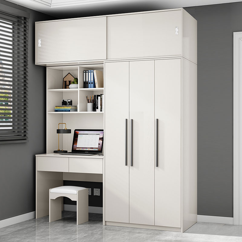 白色儿童家用卧室小户型办公电脑桌衣柜一体学生写字连体书桌柜子