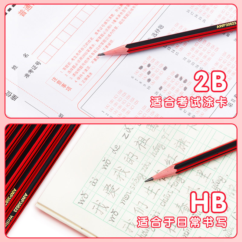 晨光铅笔小学生无毒红杆2b六角杆hb带橡皮头一年级学习练字考试专用2比无铅毒安全素描答题卡涂卡幼儿园