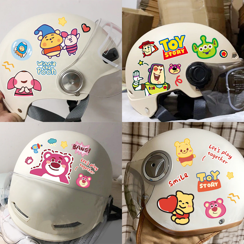 卡通维尼小熊电动摩托车贴可爱头盔装饰贴迪士尼汽车身遮挡划痕贴