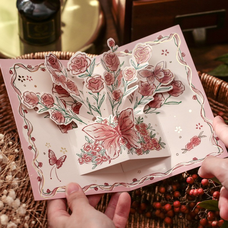 玫瑰花3D立体贺卡520创意高端烫金生日情人节礼物七夕卡片浪漫ins
