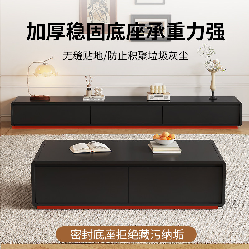 电视柜茶几组合客厅家用简约现代落地黑色2025新款实木电视机柜子