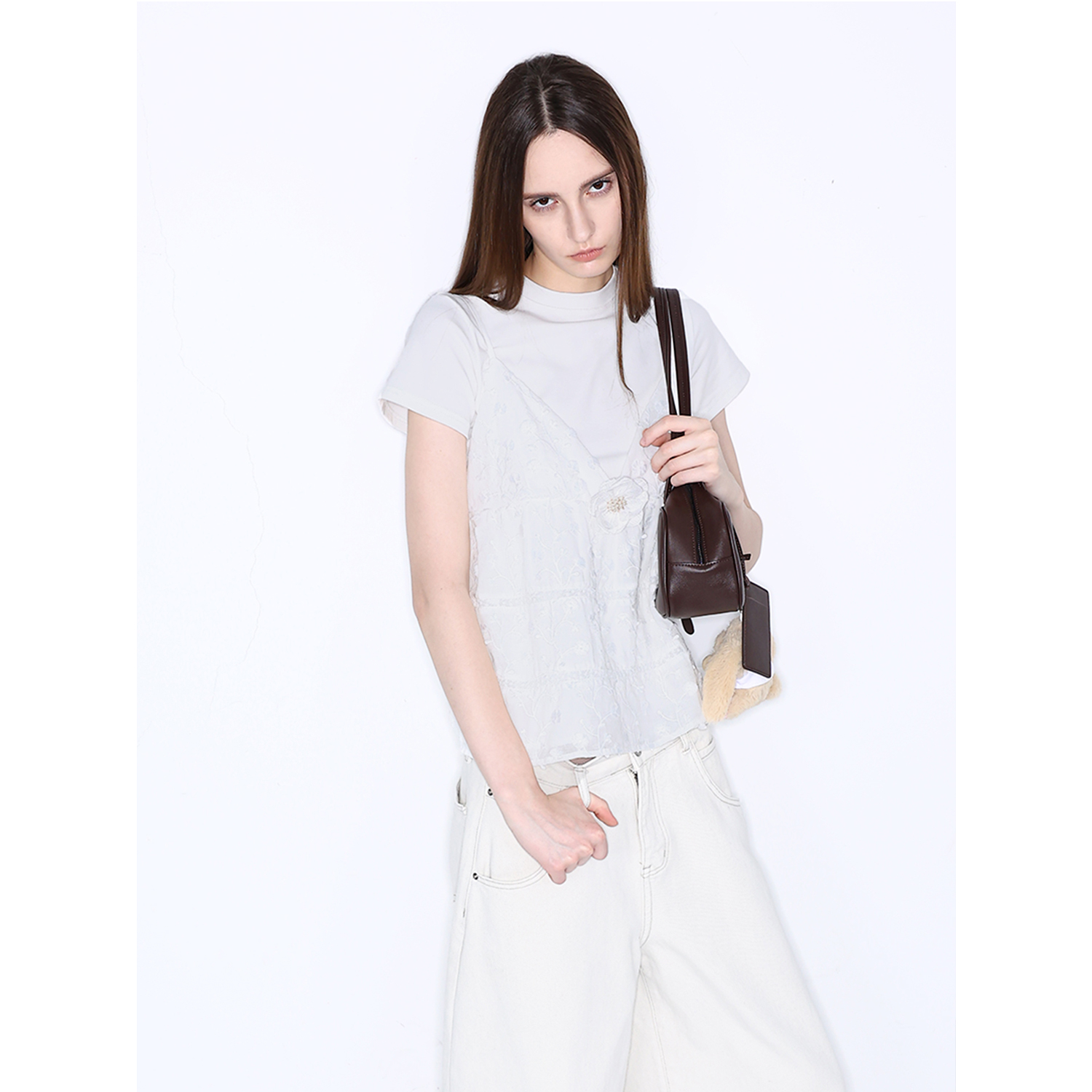 JDE 白色简约基础打底短袖正肩T恤女秋叠穿通勤显瘦休闲百搭上衣