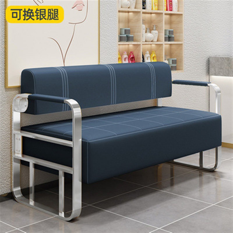 理发店沙发等候椅网红美发店休息区发廊不锈钢长条沙发椅简约