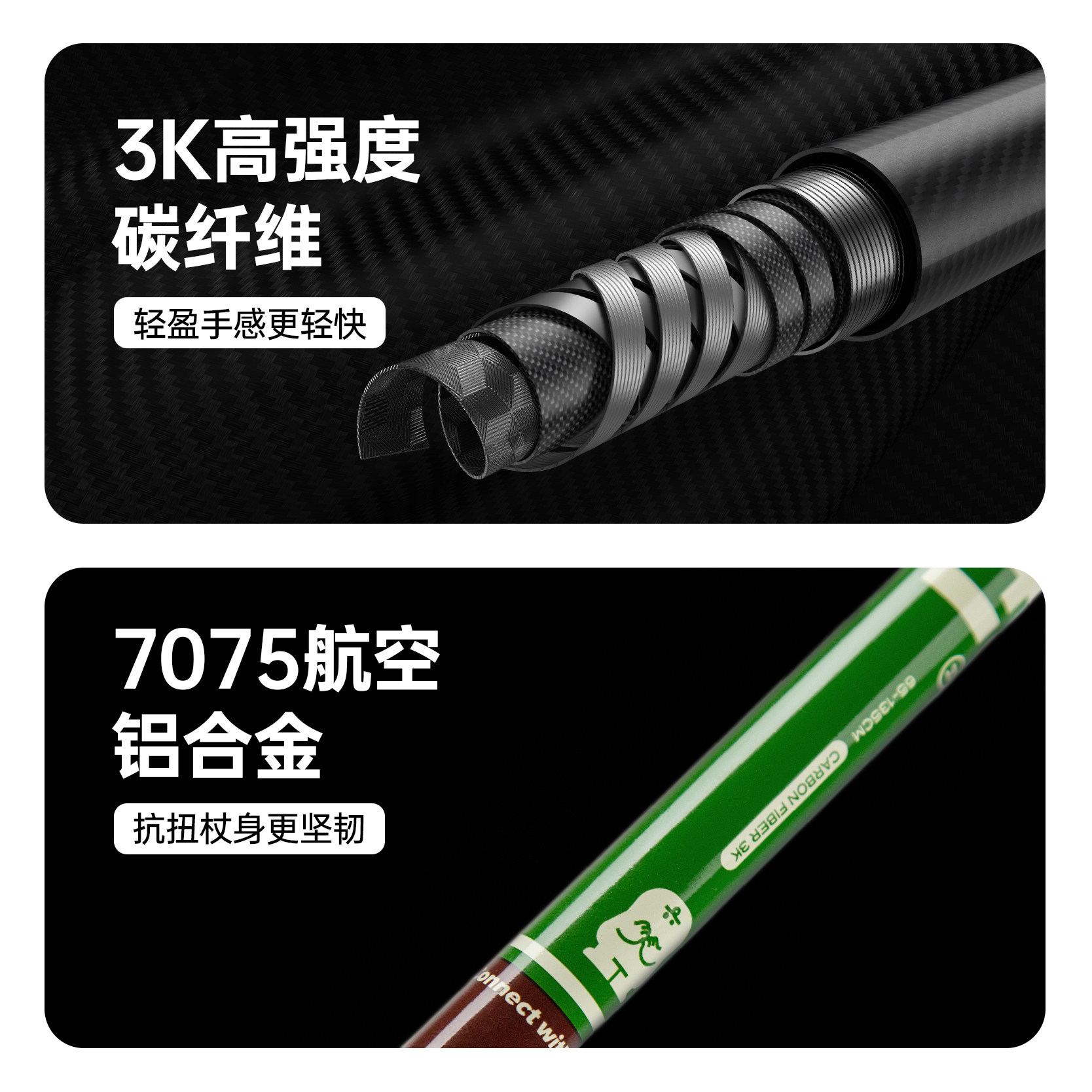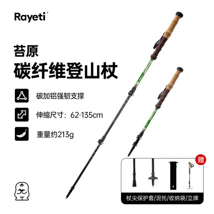 Rayeti苔原户外3K碳纤维专业登山杖碳素超轻伸缩手杖爬山徒步拐杖