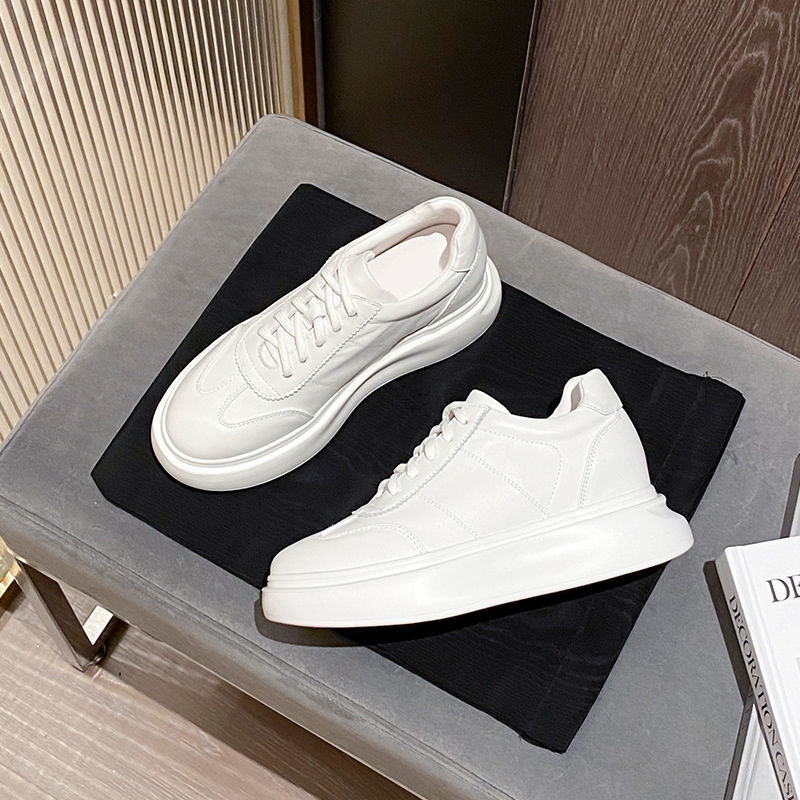 香港真皮小白鞋女2025春秋新款厚底内增高休闲板鞋ins百搭鞋子女