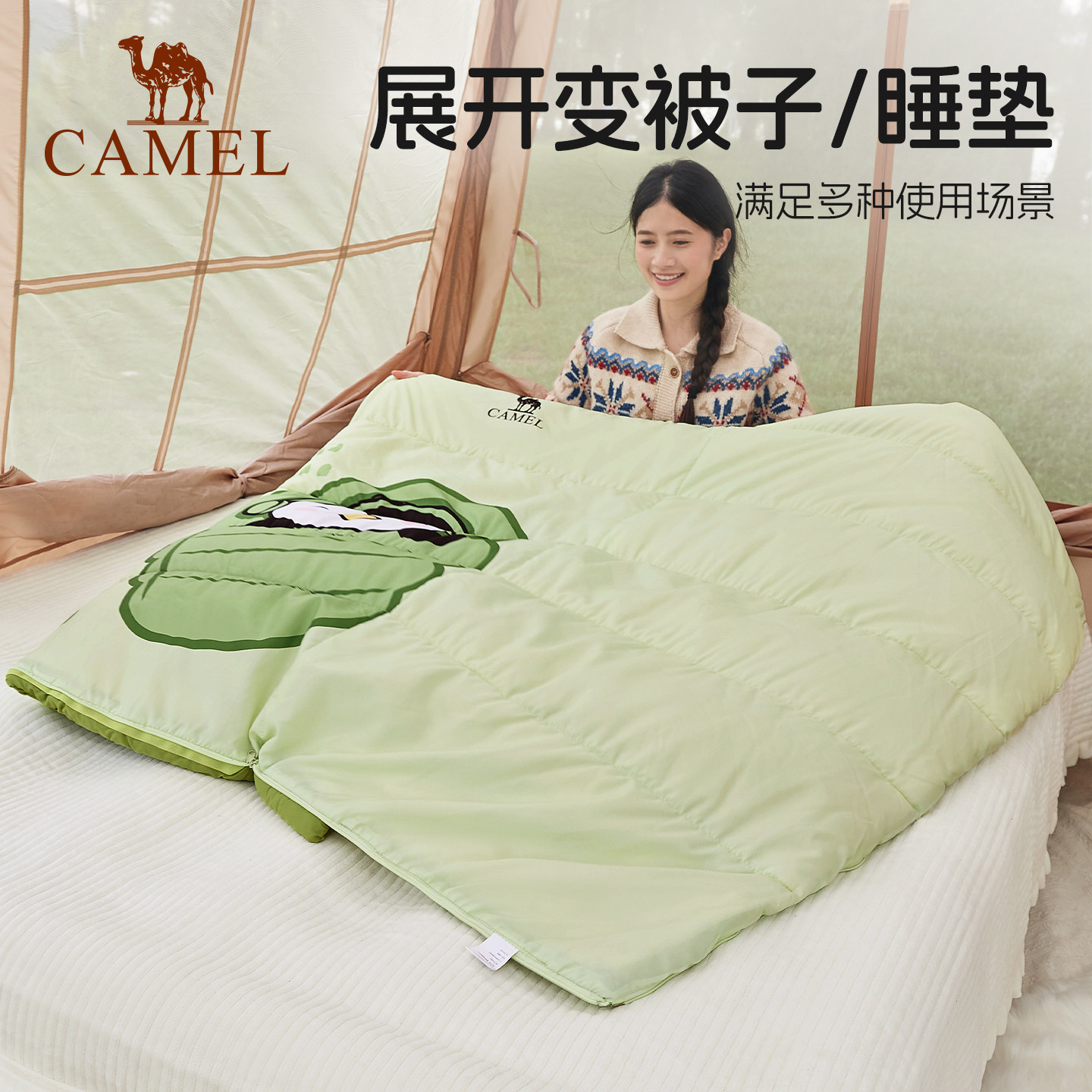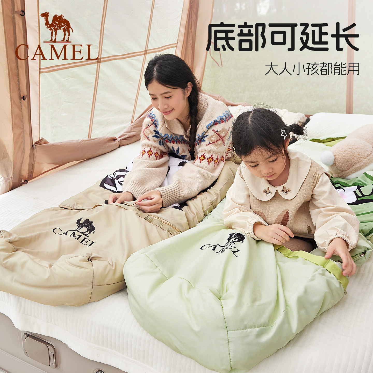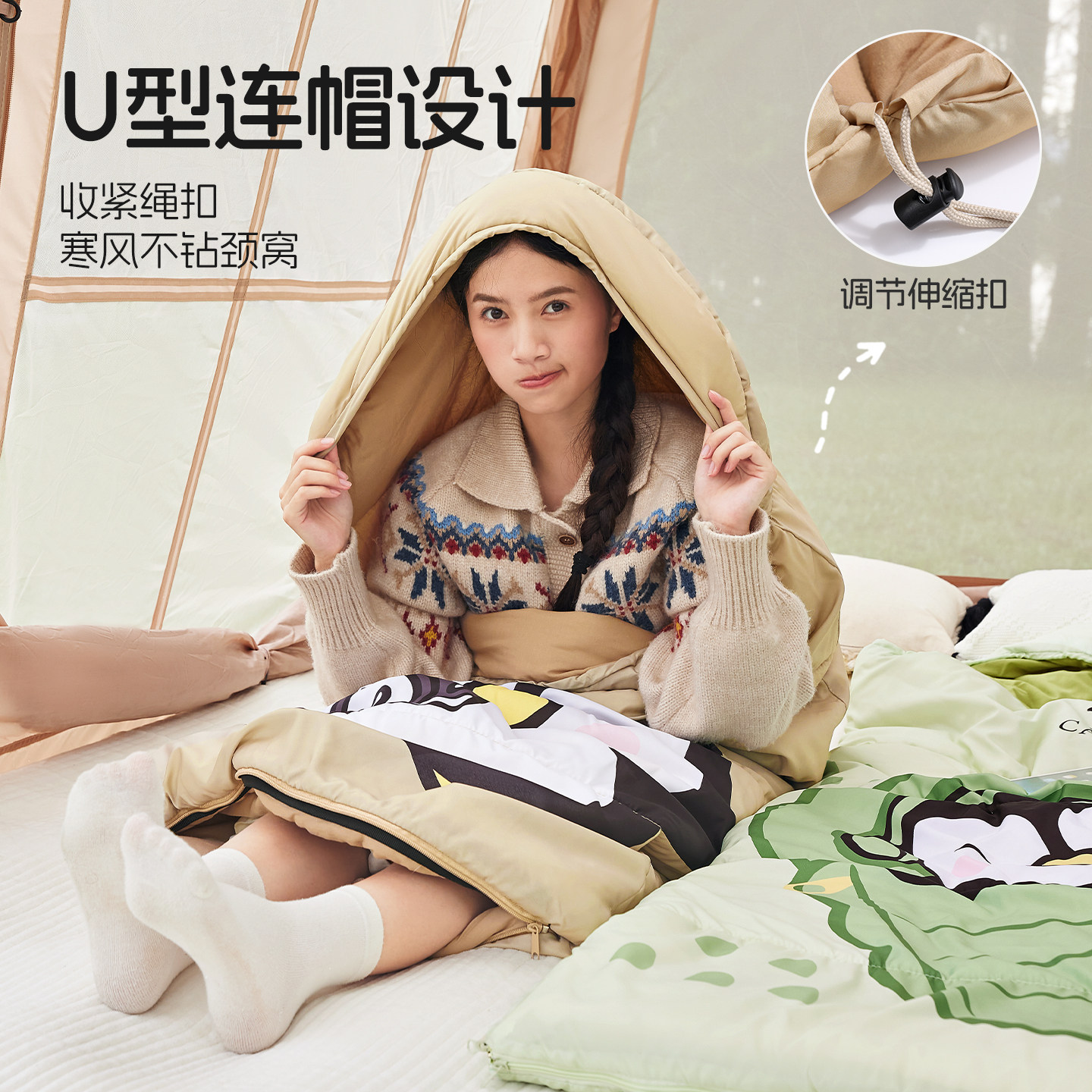 骆驼熊猫睡袋户外露营保暖加厚