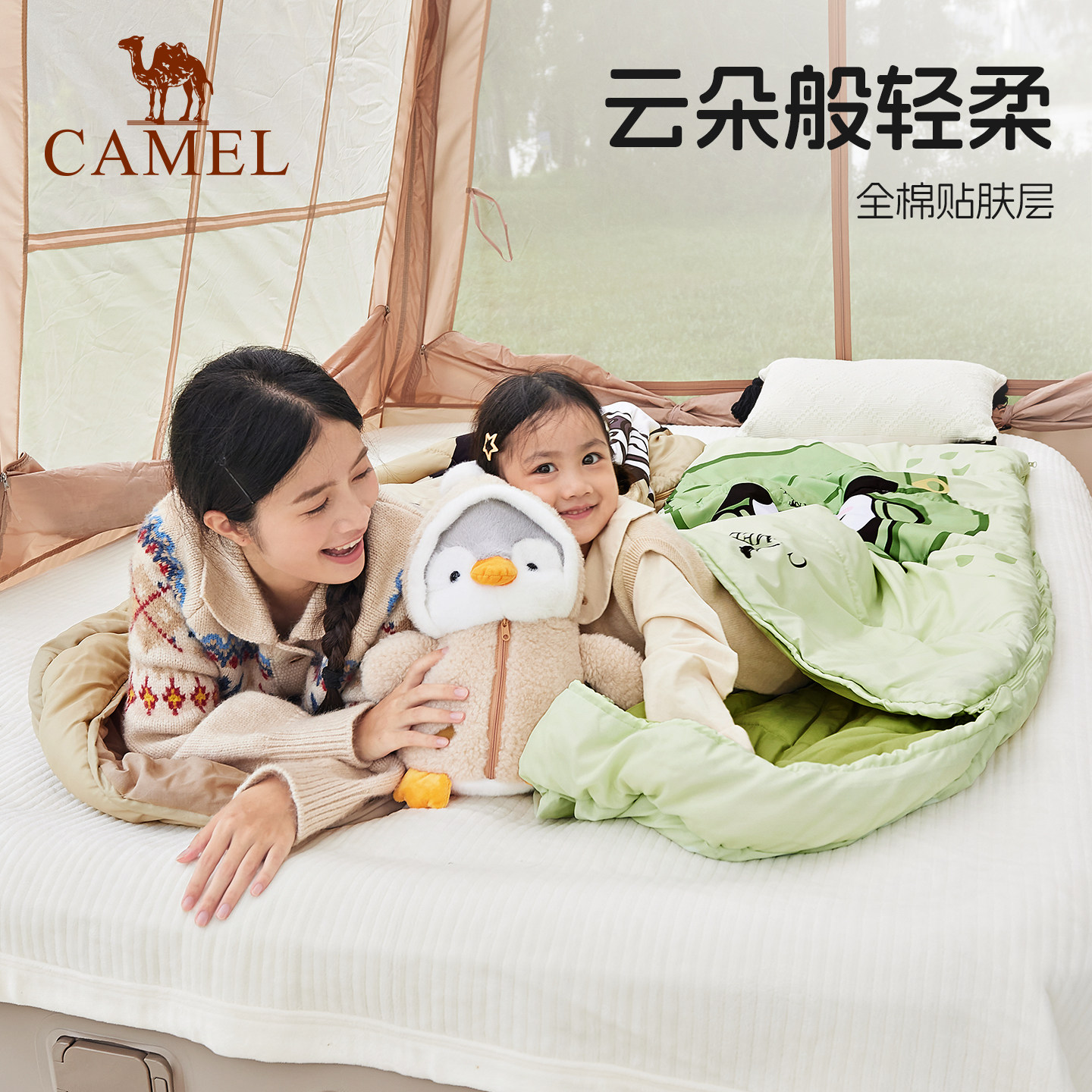 骆驼红企鹅睡袋秋冬户外儿童露营四季保暖加厚学生成人防寒午休
