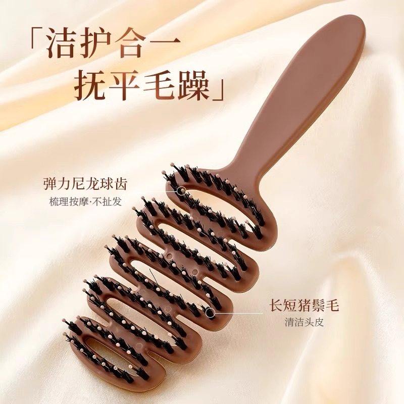 银眸猪鬃毛梳蓬松颅顶神器梳子护发顺发不打结按摩头部排骨梳卷发