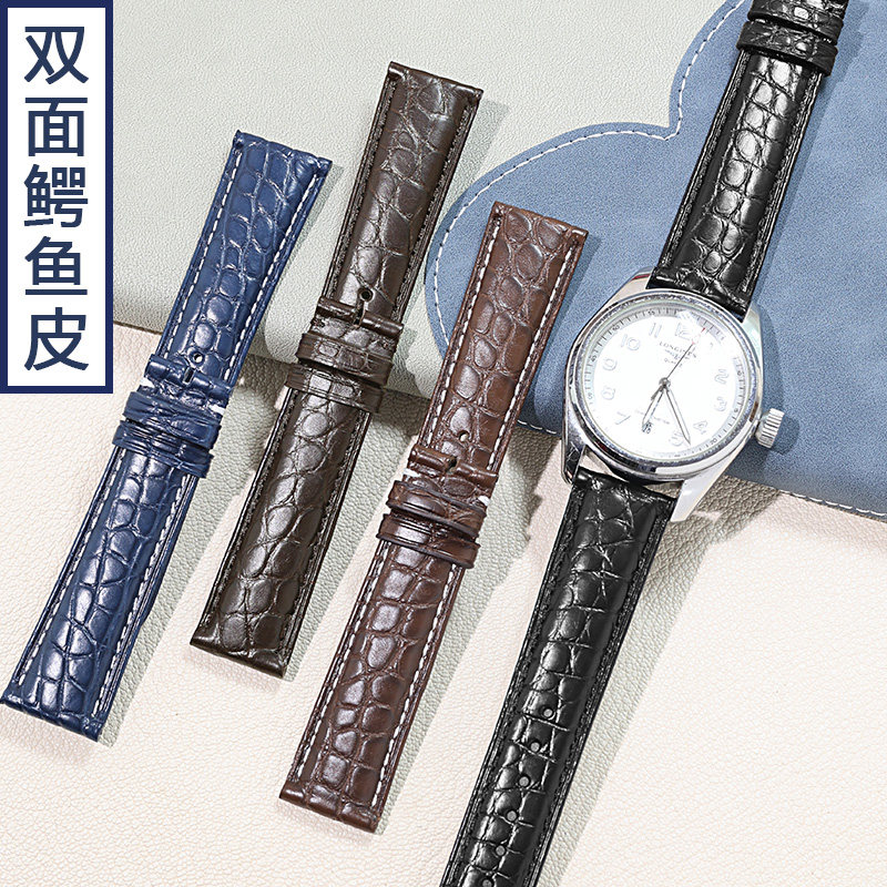 双面鳄鱼皮手表表带真皮适配欧米茄万国浪琴卡地亚积家天梭男女