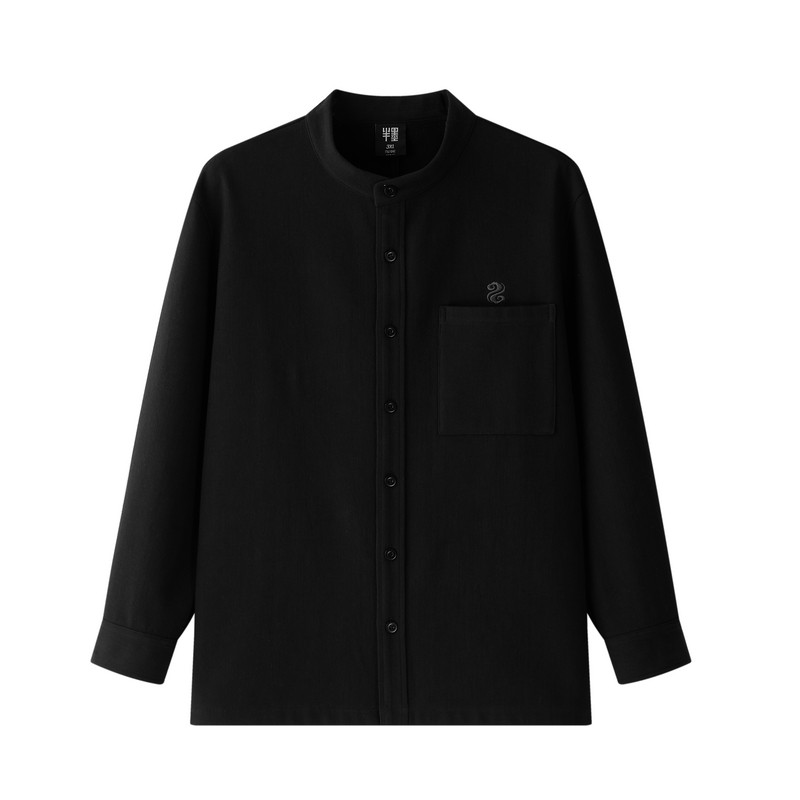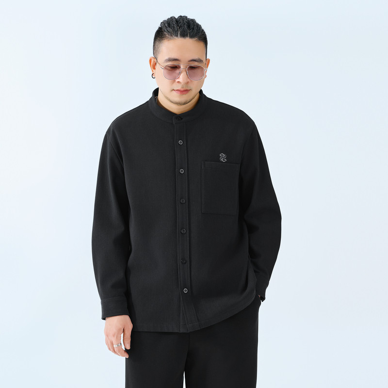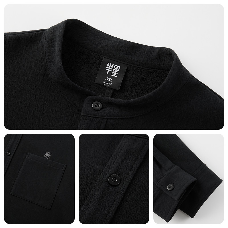 半墨新中式立领纯棉衬衫男冬季新款刺绣宽松保暖重磅加绒加厚衬衣