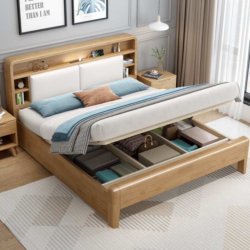北欧实木床1.8米主卧双人床现代简约小户型床1.5婚床实木储物床架