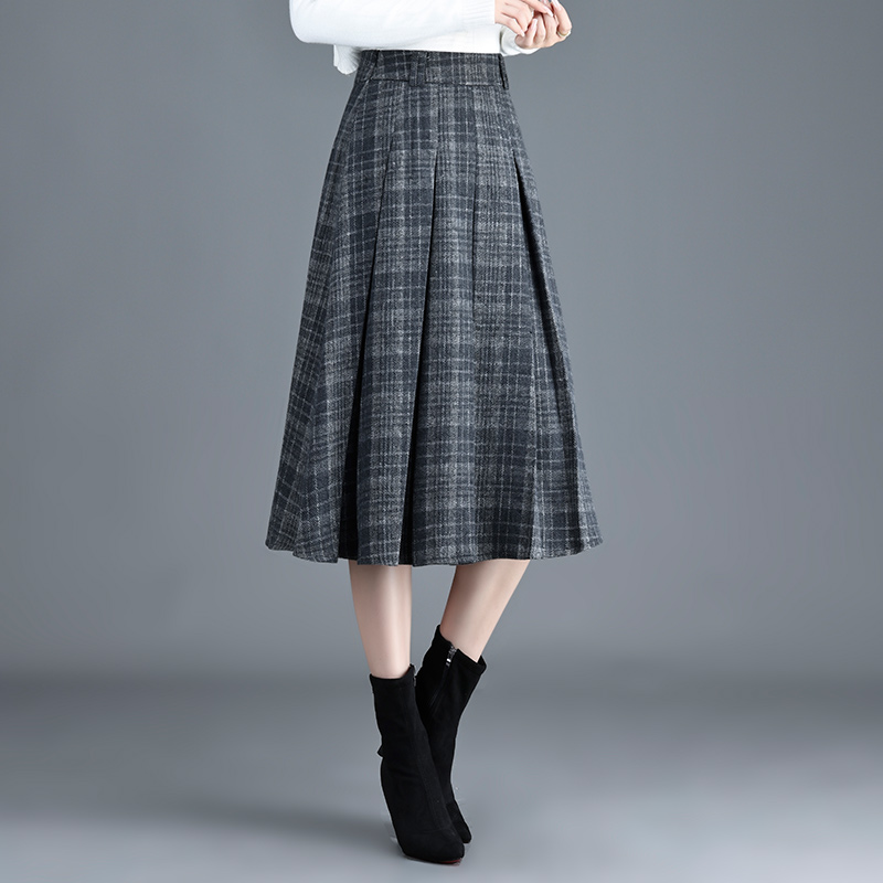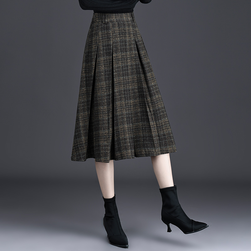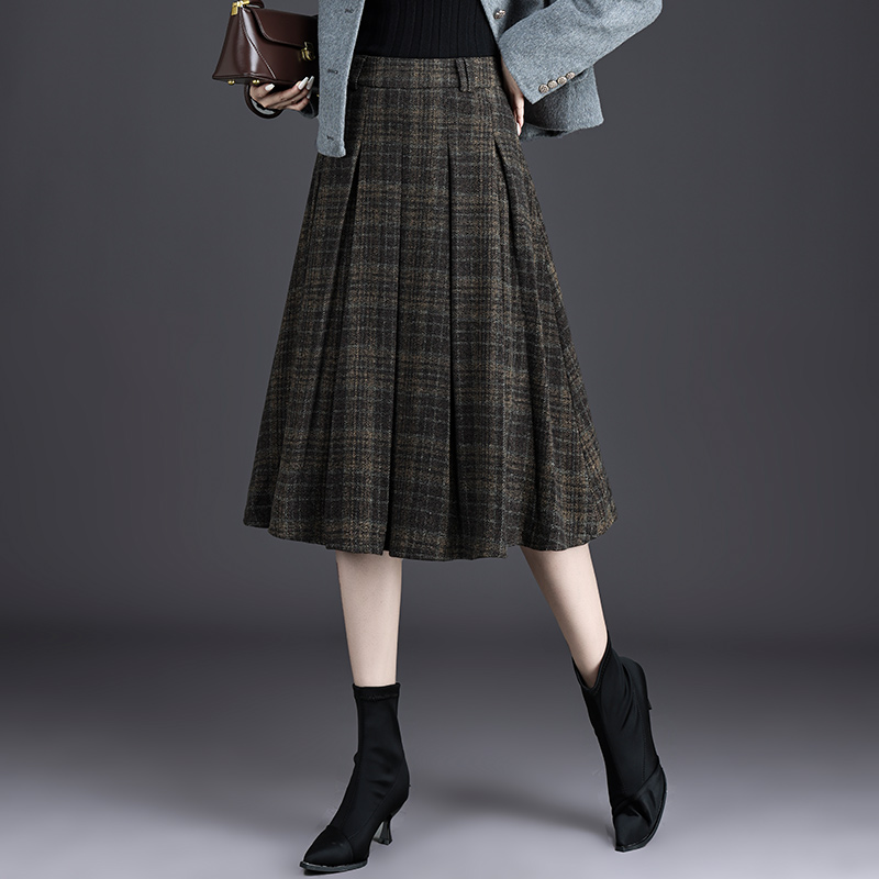 毛呢格子百褶半身裙女2025新款秋冬高腰显瘦百搭休闲中长款a字裙