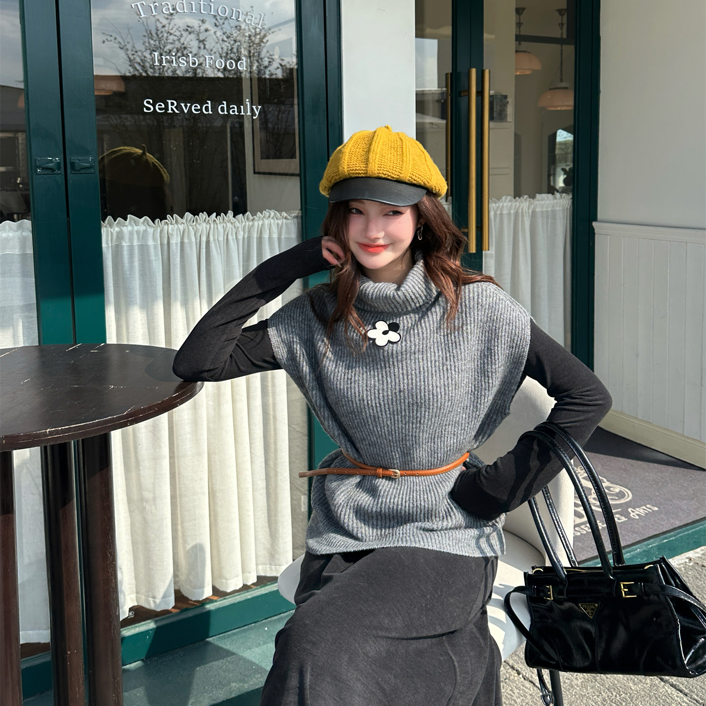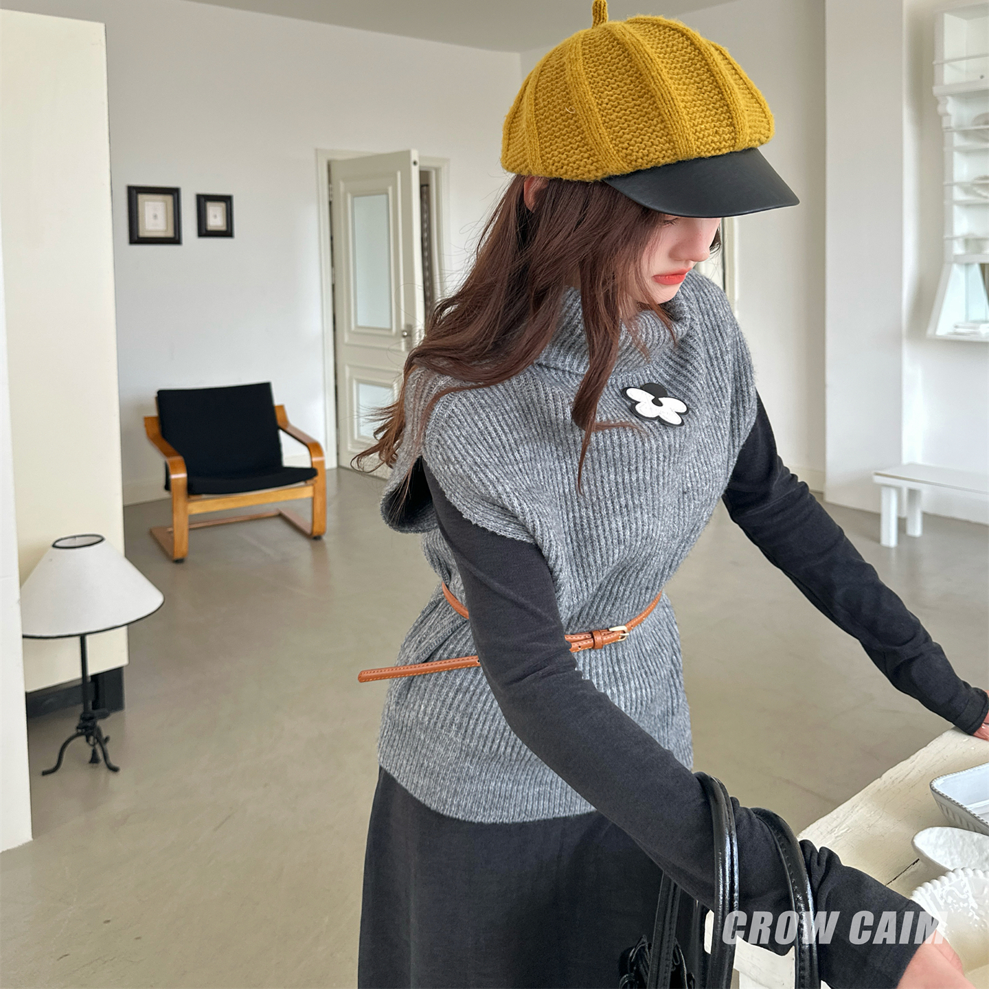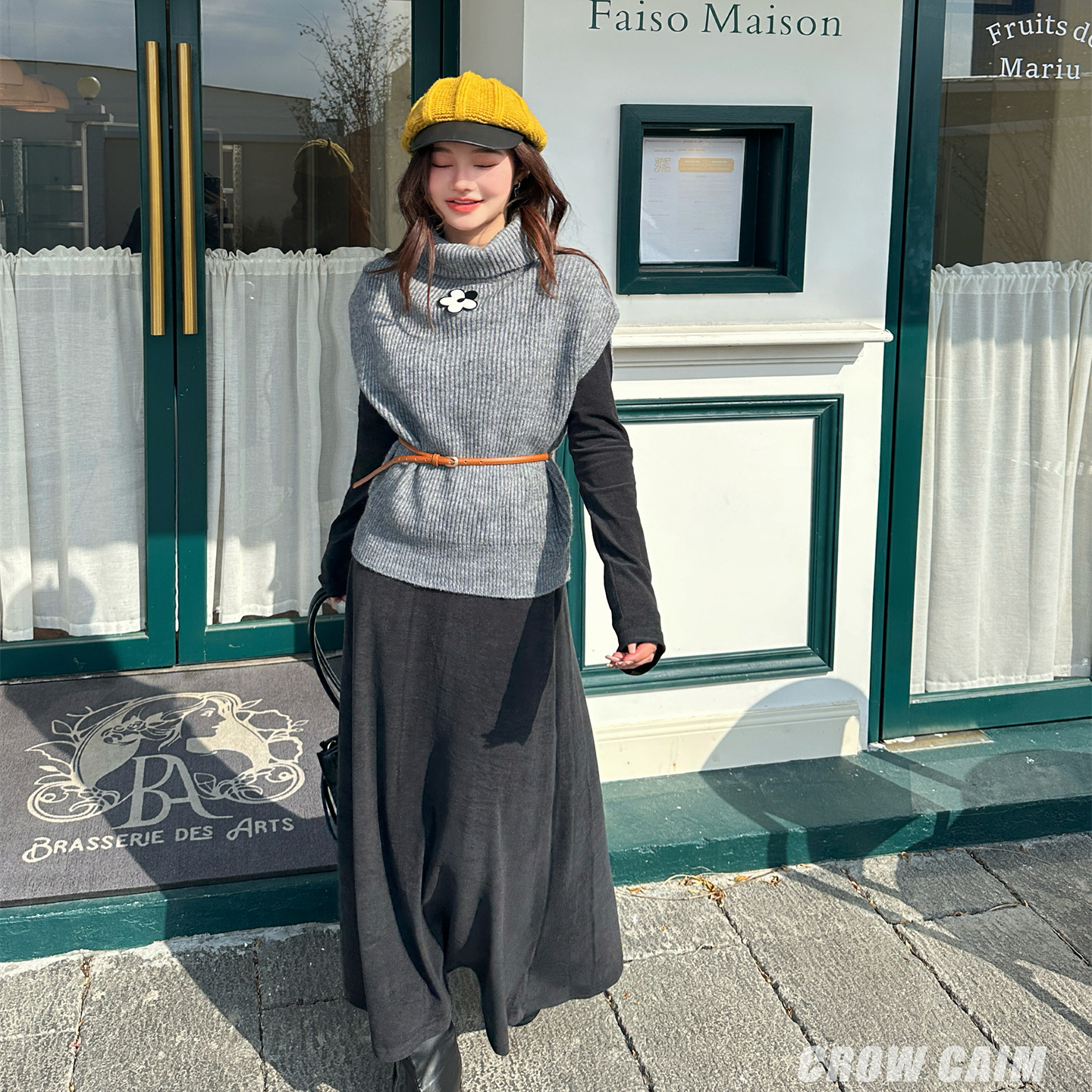 CROWCAIM 针织坎肩马甲磨毛连衣裙套装新款气质时尚两件套