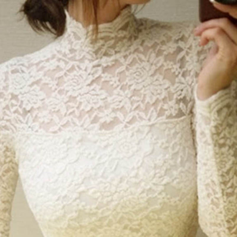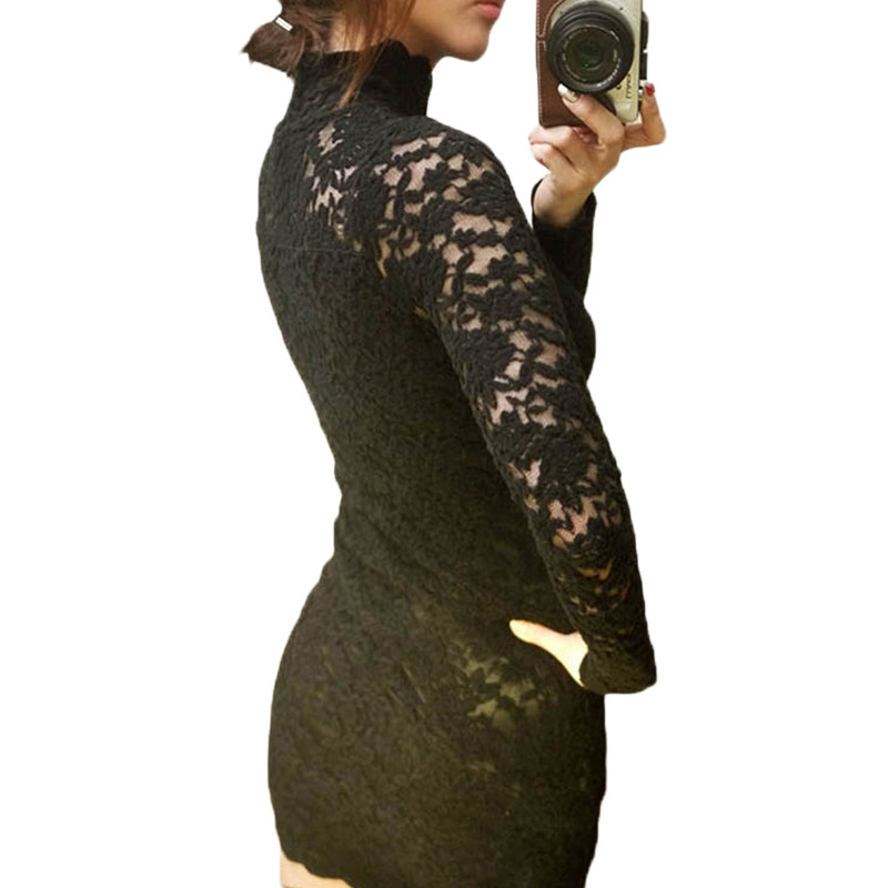 高领蕾丝连衣裙加绒通勤大码女装打底裙百搭修身显瘦花边包臀短裙