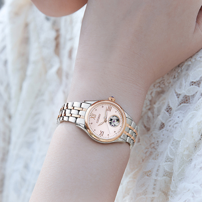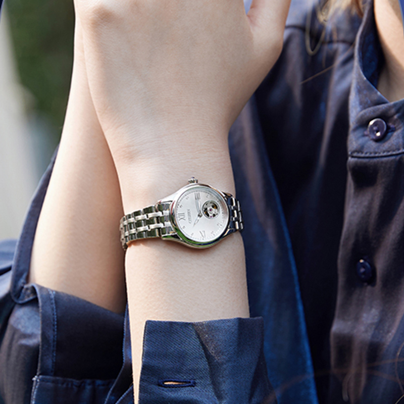 CITIZEN西铁城 新品经典贝母盘钢带镂空贝母表盘机械手表女