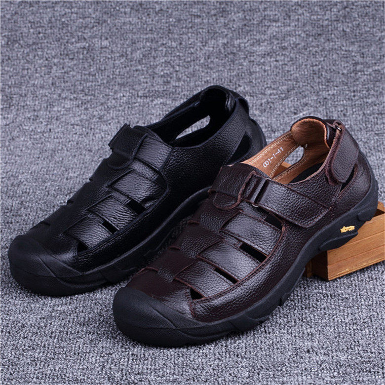 外贸男鞋原单夏季真皮凉鞋头层牛皮沙滩鞋男透气男士休闲凉皮鞋男