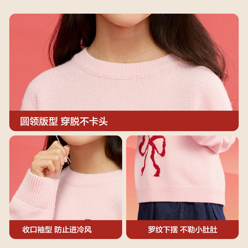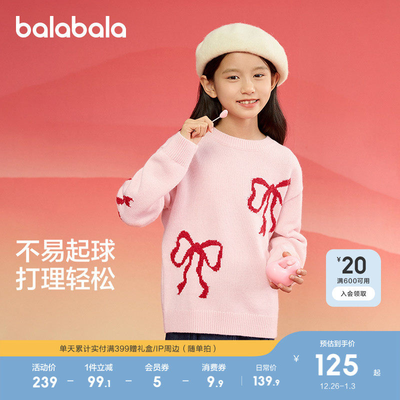 巴拉巴拉童装女童毛衣儿童毛衫2025年新款春秋圆领针织衫套头上衣