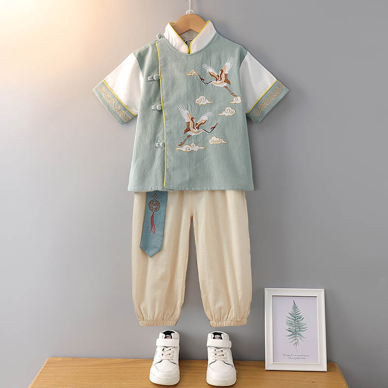 汉服男童夏装新款古风帅气儿童中国风春秋短袖长裤宝宝古装套装