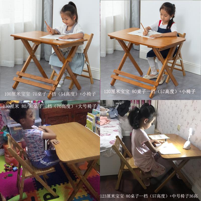 竹书桌家用写作业桌小学生书桌可折叠儿童学习桌可升降桌椅套装