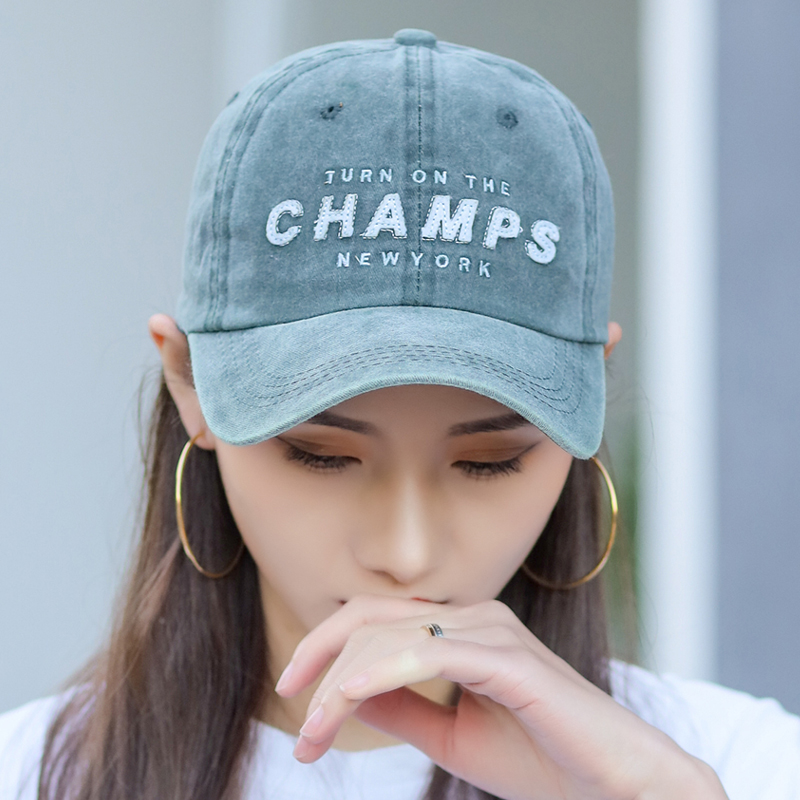 蓝色潮牌ins牛仔水洗做旧鸭舌帽